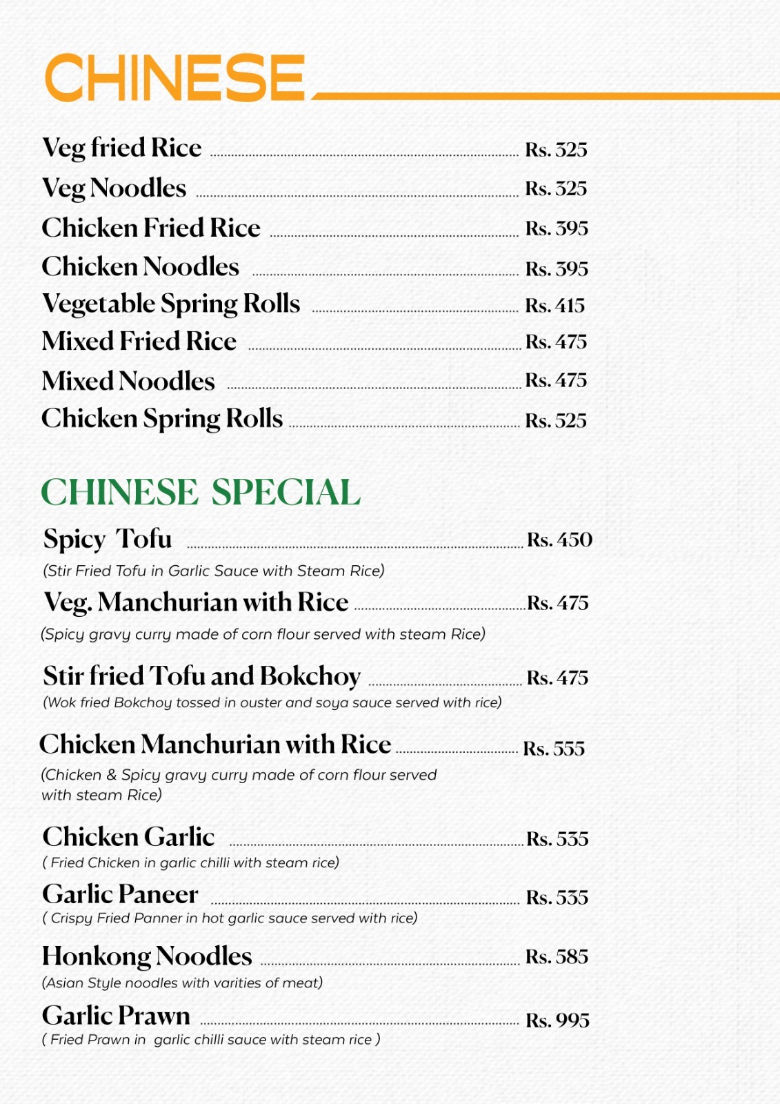 Our Special Menu